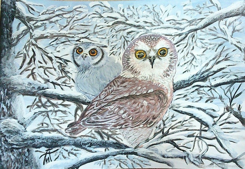 Polar owl gouache