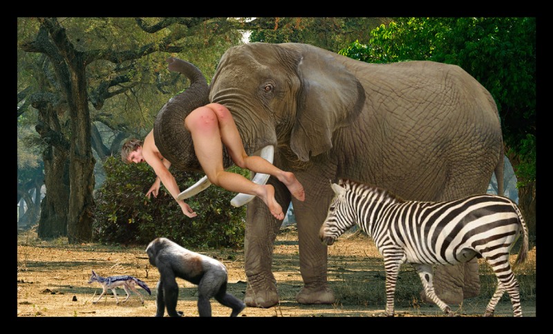 Naked photo shoot with an elephant