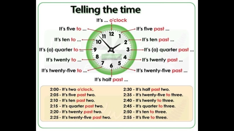 Time in the watch in English table