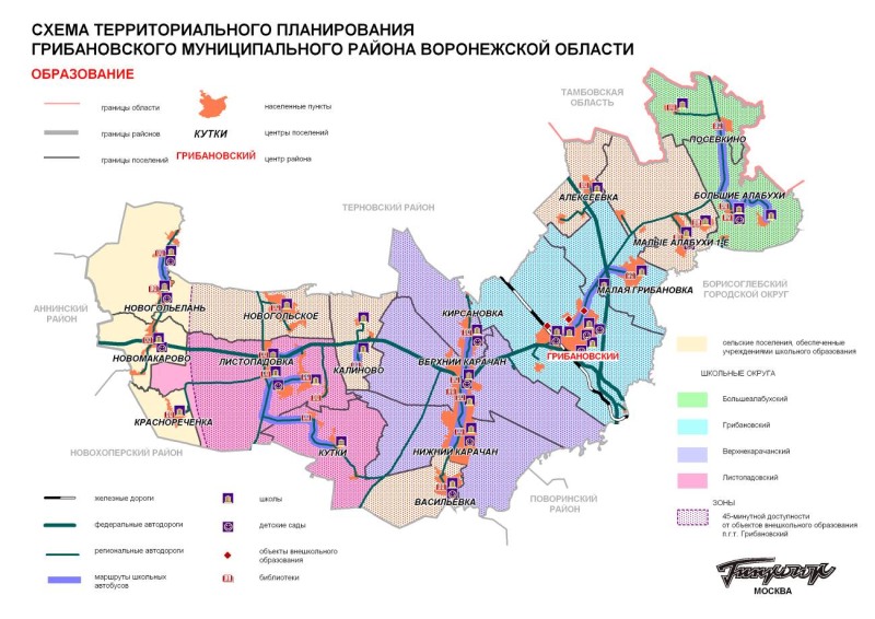 Map of the Gribanovsky district of the Voronezh region