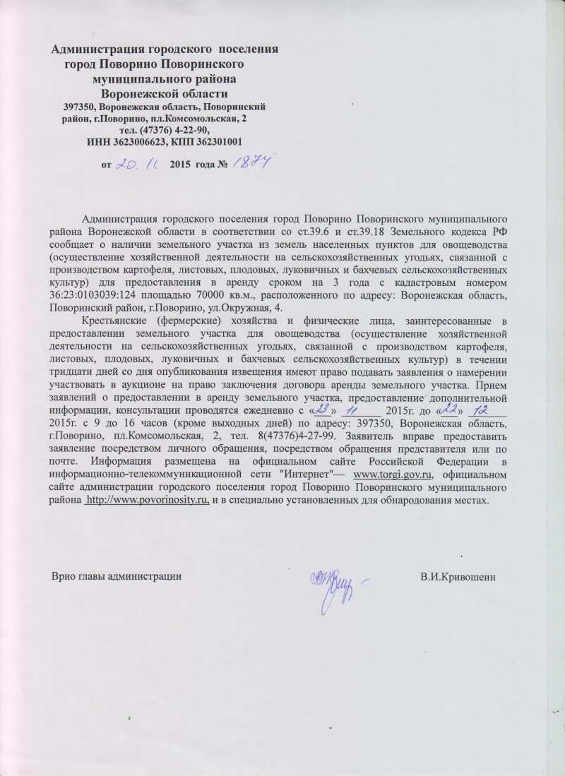 A letter on the provision of a land plot for rent