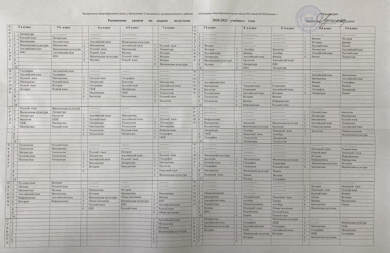 Lesson schedule at school